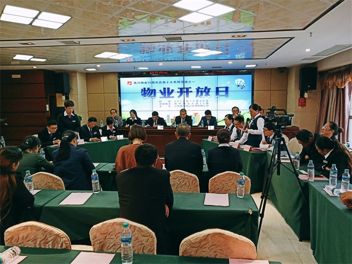 為充分展示燕興物業品牌形象,增強物業服務透明度,讓業主零距離接觸物業管理,身臨其境了解物業小區設施設備的日常運轉、管理和維護, 全面了解物業行業服務內容,親身感受物業人每天的工作職責和過程,提高對物業管理服務工作的認識,增進與物業公司的溝通與信任,提升現場服務品質,促進小區和諧穩定,2018年10月20日,江西燕興物業管理有限公司在贛州商會大廈圓滿舉行物業開放日活動,近60名政府主管部門和行業協會領導、業主代表、媒體朋友應邀參加。