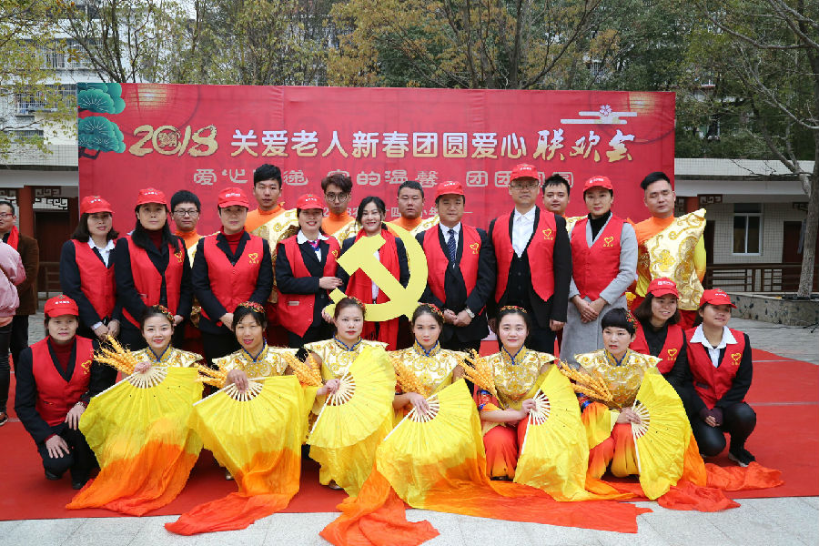 2月9日一大早,燕興物業(yè)志愿服務(wù)隊(duì)一行28人,在公司董事長(zhǎng)劉燕、副董事長(zhǎng)陽(yáng)敏、第一副總經(jīng)理夏峰、副總經(jīng)理徐桂香等領(lǐng)導(dǎo)的帶領(lǐng)下,來(lái)到贛南醫(yī)學(xué)院第三附屬醫(yī)院老年康復(fù)中心。愛(ài)心志愿者集中在康復(fù)中心大院,為老人們表演《紅紅火火》《美麗中國(guó)夢(mèng)》《三德歌》《年年有余》《感恩的心》等文藝節(jié)目,現(xiàn)場(chǎng)載歌載舞,喜笑顏開(kāi),其樂(lè)融融。